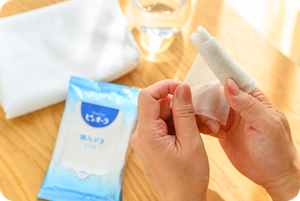髪を洗う…は難しいけれど、すっきりしたい時に。大判シートで地肌・髪をふき取るだけでリフレッシュ!こんな工夫がお互いを気持ちよく助けることに。