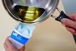 使い終わった揚げ油の処理に。牛乳パックの中に新聞紙やボロ布を詰めてから、冷ました油を流し入れ、しっかりと封をすれば可燃ごみとして処理できます。