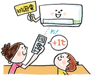 環境省が推奨している冷房の設定温度は28℃ですが、まずはいつも使っているエアコンの設定温度を、1℃上げてください。それだけで、約10%の節電になります。1℃だけなら、できそうな気がしませんか?