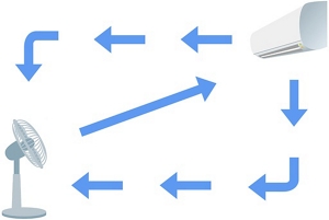 また、扇風機は冷気の貯まる場所、つまりエアコンの対角線上に置くと、上手に部屋の空気を対流させることができます。