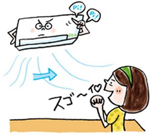 冷気は下に落ちるため、エアコンの風向きは水平がおすすめです。