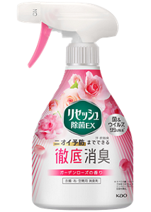 お部屋のニオイが気になるときは「リセッシュ除菌EX ガーデンローズの香り」でリセット。自然なお花の香りが広がります。ソファやカーテンなどの布製品、空間に使える消臭スプレーです。