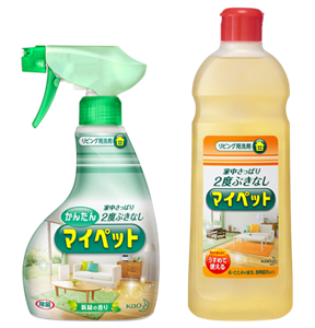 フィルターがべたつくと、ホコリが付きやすくなります。掃除機で吸い取れない目に詰まった汚れは、「かんたんマイペット」をスプレーして拭き取ったり、「マイペット」を使って水洗いしましょう。