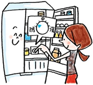 冷蔵室は夏でも「中」、冬は「弱」で十分に冷えます。冷蔵庫を買ってから、温度調節をしたことがないという人は案外多いようですが、季節に合わせて、こまめに温度設定をすることも節電の重要なポイントですよ。