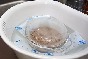 ラップをした状態で保冷剤の上にのせたり、容器ごと冷水に入れると、短い時間で冷ますことができます。