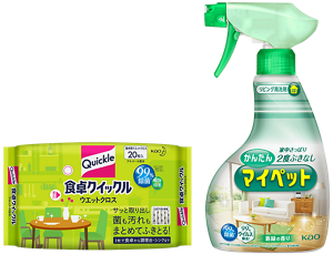 冷蔵庫の外側や取っ手の汚れは、「食卓クイックル ウエットクロス」や「かんたんマイペット」で簡単お掃除!除菌*対策もできて清潔に保てます。