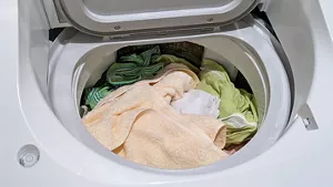 洗濯は家族の人数が多い場合や、暑い季節は回数が増え、水の使用量が気になります。まとめて洗濯をすると節水になりますが、詰め込みすぎては汚れが落ちにくくなります。1回の洗濯物の適量は洗濯槽の7~8割程度です。縦型洗濯機では洗濯槽の銀色部分が5cmほど見えるくらい、ドラム式は丸い窓に隙間が見えるくらいを目安にしましょう。