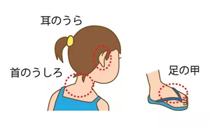 首のうしろや耳のうら、足の甲などは、ついうっかり忘れてしまいがち。ぬり残さないように、気をつけて!