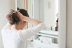 後ろの髪は、まとめ髪にすると首元の温度が2℃ほど下がります。
