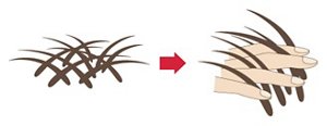 “髪がパサつく”ということは、毛の流れが揃わずバラバラな状態を、見た目や触ったときに水分や油分が足りない状態に感じてしまうこと。実際に水分量が少ないから起こるのではありません。表面や毛先がうるおって見えず、ざらついた手触りになることです。