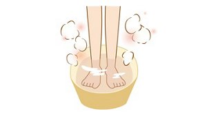 バケツや深めの洗面器などに40℃くらいのお湯をはり、両足を10分程度つけます。