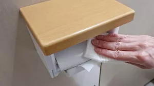 便座の裏側は、飛び散った尿などで汚れやすい場所。ニオイの原因にもなるため、汚れを残さないよう、丁寧に拭き取りましょう。