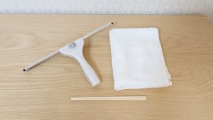 このとき、布の代わりにスクイージーを使うと、ラクに手早く終わります。ひと拭きごとにスクイージーに付いた汚れを布でぬぐうと、拭きスジが少なくてキレイな仕上がりに。