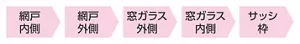 窓まわりの掃除は、網戸(内側→外側)→ガラスの外側→ガラスの内側→サッシの順でお掃除すると効率的です。窓ガラスは汚れのひどい外側からキレイにすると、内側の汚れ具合がわかりやすくなります。