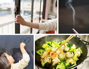 外側は、主に排気ガスや風で飛んできた土、砂、花粉です。内側は、外から入ってきた砂や花粉だけでなく、窓を開け閉めする際に付いた手アカやホコリなどのハウスダスト、油調理の際に舞った油が付着するなど、汚れの原因もさまざまです。