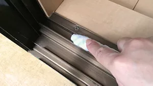 サッシの枠や溝の部分は、細口ノズルを付けた掃除機で、ごみやホコリを吸い取ります。掃除機で吸い取れない隅にたまったホコリは、歯ブラシなどでかき出しましょう。次に、古タオルに「ガラスマジックリン」をスプレーして、汚れを拭き取ります。こびりついた汚れは、その古タオルを割りばしの先に巻いて拭き取ります。