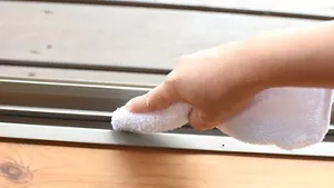 サッシ部分にこびりついた汚れは、「ガラスマジックリン」や「かんたんマイペット」をスプレーした古タオルを割りばしの先に巻いて、サッシの溝に入れて拭きましょう。