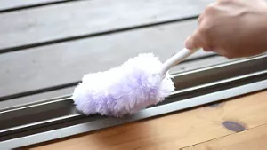 窓を閉めて外側から、毛先の柔らかい大きめのブラシでホコリを払う