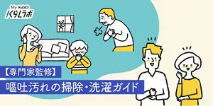 体調不良で思いがけず嘔吐してしまうと、本人も、周囲も慌ててしまいがちです。床や衣類に嘔吐した際は、初期対応と後片付けのポイントを知っておけば、汚れやニオイの広がりを抑え、衛生的に対処できます。ここでは、家庭でできる嘔吐汚れの処理のための基本的な4つの心得と掃除、洗濯の方法を紹介します。