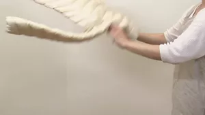 完全に乾いたら、羽毛が均一になるように、縦と横の両方から軽くふりさばいて空気を入れてふんわりと仕上げます。