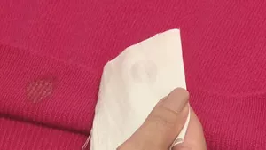 濃い色のセーターは洗濯前に色落ちチェックをします。おしゃれ着用洗剤「エマール」の原液を目立たないところ(裾の内側など)に付け、5分後に白い布で押さえて色が付くようなら単独で手早く洗います。