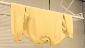 セーターはニット(編み物)なので、ぬれて重くなったものをハンガー干しすると、重さで肩が伸びたり、型崩れが起きたりすることがあります。