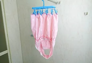 干す前にエコバッグを裏返し、全体を振りさばいた後、両手ではさむように軽くたたいてシワを伸ばして形を整えます。ピンチハンガーなどを使い、中に空気が通るように干しましょう。