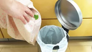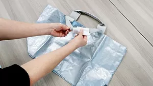 中身をすべて出したら、エコバッグを裏返してくずやごみを払いましょう。冷蔵・冷凍食品など、冷たいものを入れていた場合は、エコバッグが湿っているので、ハンガーなどに掛けて乾かしてからたたみましょう。