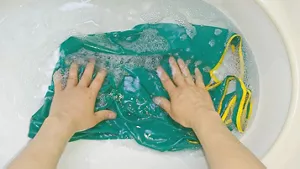 脱水後は放置せず、すぐに干して完全に乾かしましょう。濡れたままでは、他のものに色移りする可能性があります。