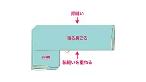 そのまま、背縫いに沿って手前に折り返し、脇縫いどうし、袖どうしを合わせます。
