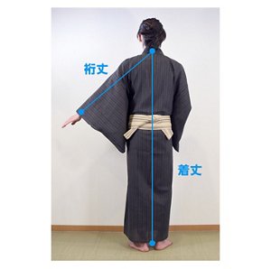 既製の浴衣は身長でサイズ分けをされているものが多いので、あらかじめ自分の寸法を確認してなるべく自分のサイズに近いものを選びましょう。腰紐や帯を締めたり、着用中にシワが入ると、丈が少し短くなる事も考慮して選ぶのもポイントの一つです。