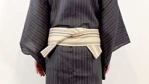 「片ばさみ」は、男性の帯結びの中でもオーソドックスでかつ粋な結び方。長時間でも崩れにくく、電車で座るときにも邪魔にならず人気です。