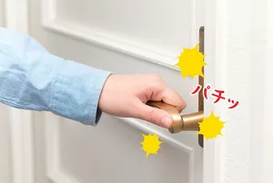 金属のドアノブに手を掛けた時に“パチッ、ビリッ”と感じた経験はありませんか?これは体にたまった静電気が、電気を通しやすい金属に触れて一気に流れることにより起こります。“パチッ、ビリッ”を防ぐポイントは、静電気を「ためない」「上手に逃がす」ことです。
