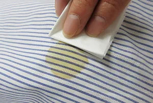 こすらずに押さえるようにして、シミをティッシュペーパーなどに移し取りましょう。