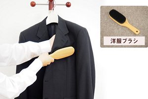 洋服ブラシを使ってホコリをサッと落とします。まず下から上にブラッシングしてホコリを浮かせ、次に上から下にブラッシングしてホコリを落とします。