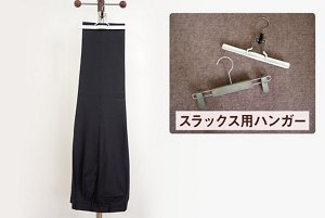 スラックスは、クリップの付いたズボン吊りタイプのハンガーに裾部分をはさんで逆さに吊すと、ウエスト部分の重みでシワがのびやすくなります。