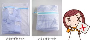 洗濯ネットは、ちょうどよいサイズのものを使いましょう。