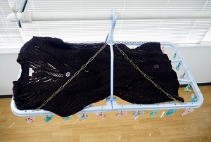 ニットなどの伸びやすい衣類やデリケートな衣類は、ピンチハンガーの上などで平干しすると、型崩れを防げます。