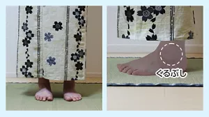 「股割り」をすることによって、適度なゆるみが出て空気の通り道ができますし、足に浴衣が貼り付かず、格段に歩きやすくなります。