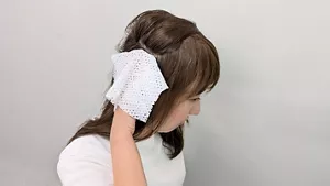 長い髪はタオルではさんで汚れをたたくように拭き取ります。このとき、髪同士が強くこすれ合わないように注意しましょう。