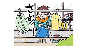 手が冷たい。山なので気温が低く、外に出る時間を短くするため、室内で全部ハンガーに洗濯物をセットしてから、外の物干しに一気にかけます。晴れ間をみて、外に出したり室内に入れたりと忙しい。(40歳・女性/香川)