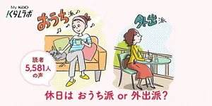 休日の過ごし方について読者に聞いたところ、『おうち派』が61% (「おうち派」「どちらかと言えばおうち派」の計)、『外出派』が39% (「外出派」「どちらかと言えば外出派」の計)という結果になりました。年代別に見ると、男女ともに若い世代ほど『外出派』の割合が高い傾向にあり、20~30代では約半数を占めました。