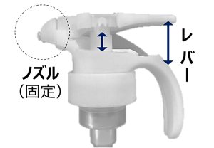 シャンプーポンプのように、押したときにノズルまで一緒に下がってしまうと、狙ったのとは違うところに洗剤が出てしまう可能性があります。そこで、レバーを押してもノズルは動かない設計にしました。