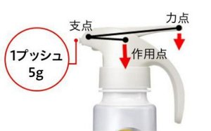 しかもワンプッシュで5gという定量が出る設計なので、目盛りに集中するストレスがなく、洗濯量に応じて、1回プッシュ、2回プッシュというように、押す回数を増やすだけ。