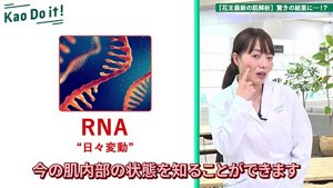 花王は「皮脂RNAモニタリング」技術を活用し、肌悩みの要因を予測することができる最新の肌解析技術を開発しました。肌解析のカギになるのは、化粧ポーチに入っているあぶら取りフィルム! 動画では、シミに悩む花王のPR担当が実際に肌解析を体験し、その結果を研究員が解説しています。