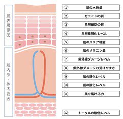 以下の12項目から肌の状態を導き出します。