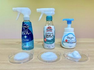 左から、「キュキュット CLEAR泡スプレー」「トイレマジックリン こすらずスッキリ泡パック」