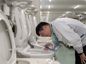 便器内の汚れに向き合う土屋