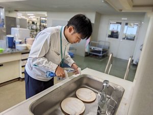食器汚れに向き合う益田