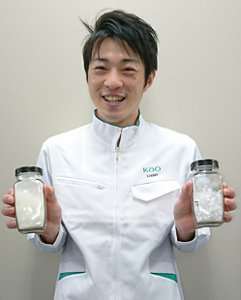でも、実は研究面からみると、“花王といえばこれ”というような洗剤やシャンプーなどの商品とちゃんと繋がっています。花王は長年、石けんなどの製品をつくるために、界面科学技術を磨き続けてきました。これを活かして化学製品でも、ほんの少し添加することでコンクリートの硬さをコントロールできるようにする製品などを実は開発しています。